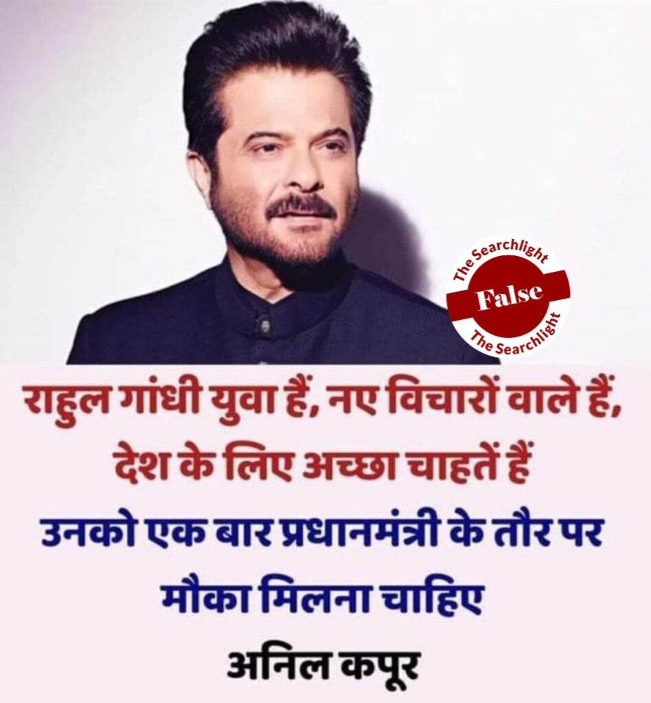 नई दिल्ली: सोशल मीडिया पर फिल्म एक्टर अनिल कपूर का एक इन्फोग्राफिक बहुत वायरल हो रहा है. इंफ्रोग्रफिक में लिखा हुआ है ” राहुल गाँधी युवा हैं, नए विचारों वाले हैं, देश के लिए अच्छा चाहते हैं. उनको एक बार प्रधानमंत्री के तौर पर मौका मिलना चाहिए.” ग्राफ़िक को सोशल मीडिया पर शेयर करके यह दावा किया जा रहा है की एक्टर अनिल कपूर ने राहुल गाँधी के बारे में ऐसा कहा। इसी तरह के दावों की सोशल मीडिया पर भरमार है.